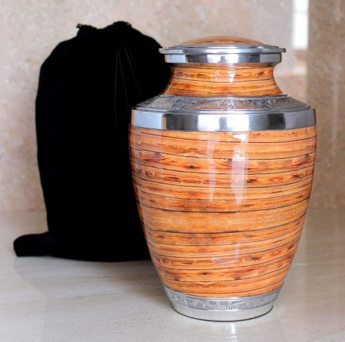 Aluminium Cremation Urn Memorial Jar Pot Container Full Size Urn for Funeral Ashes Wooden Printed Metal Urn Brown – 10″ Inches