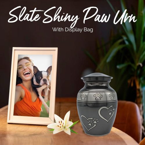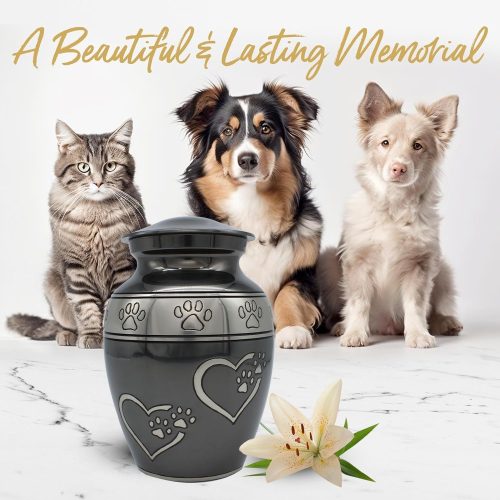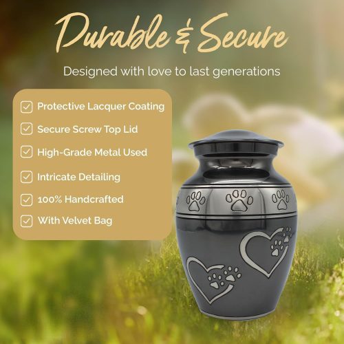 Black & Pewter Pet Cremation Urn for Ashes -Paw Engraved Metal Animal Urn with Velvet Bag-Funeral; Supplies