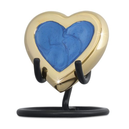 Blue Enameled Metal Heart Keepsake Urn for Male & Female Ashes,Mini Decorative Urns