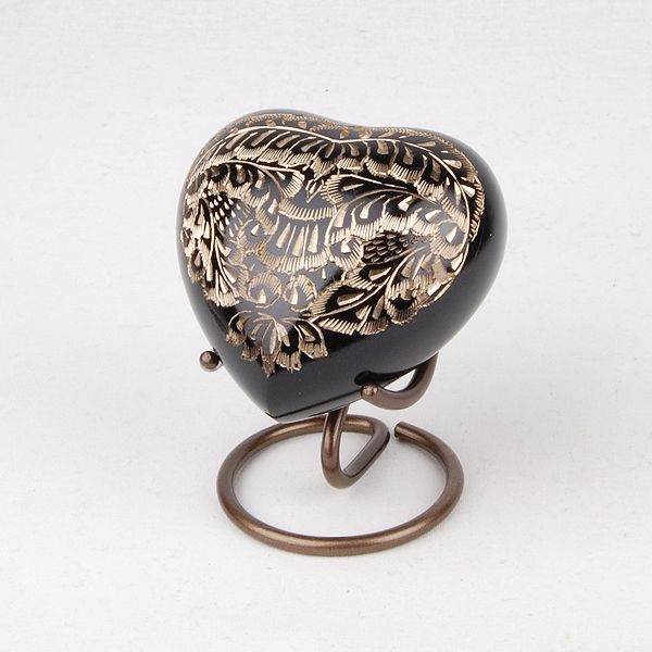 Golden Engraving on Black Brass Heart Keepsake Urn for Ashes-Funeral Urns Manufacturer