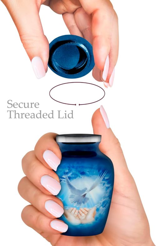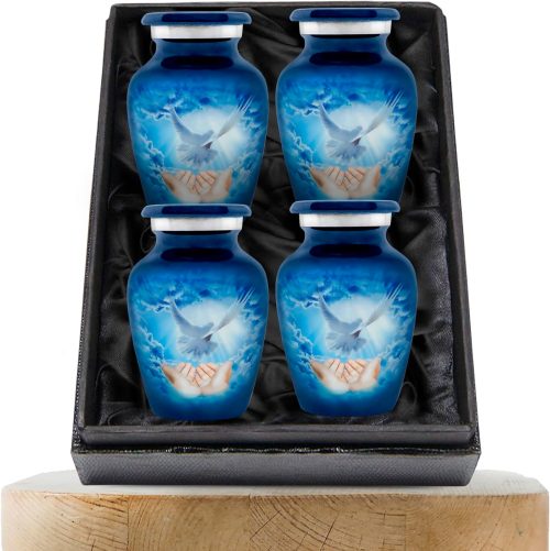 Praying Hands Blue Sticker Keepsake Funeral Urns Set of 4,Burial Small Urns