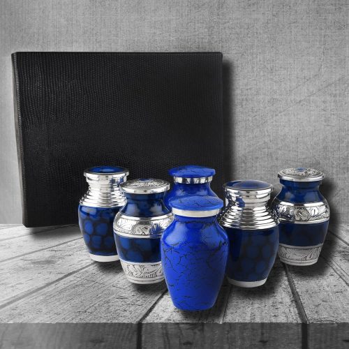 Set of 6 Blue & Silver Mini keepsake Urns for Ashes,Memorial Urns Set with Velvet Case-Funeral Supplies