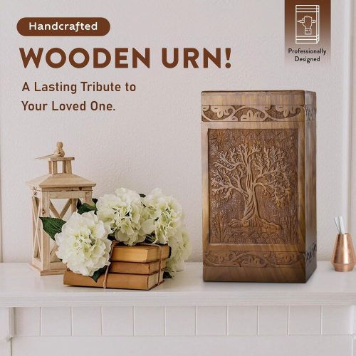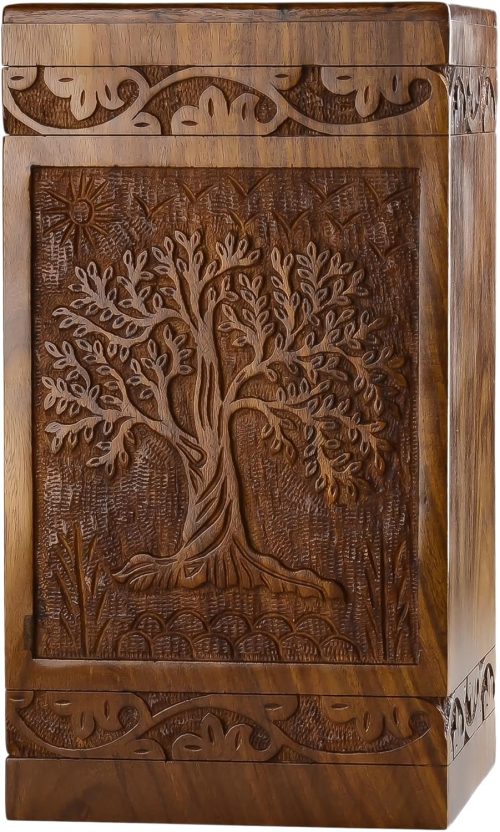 Wooden Handmade Rosewood Urn for Human Ashes | Tree of Life Wooden Urns Hand-Crafted – Funeral Cremation Urn for Ashes